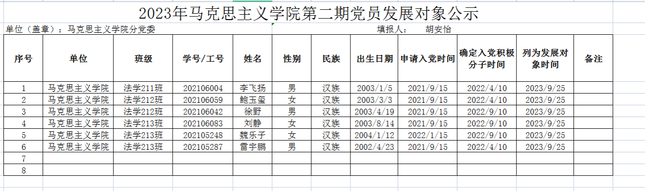 明升MS88体育登录2023年第二期党员发展对象公示