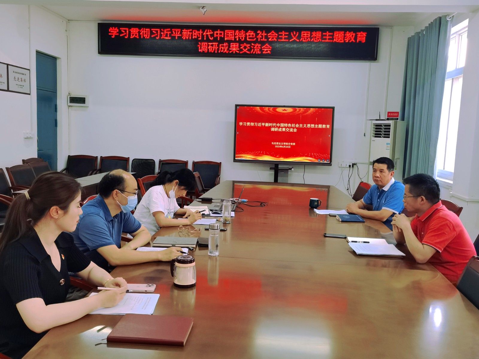 计毅波总结到通过调研,班子成员对思政课建设和学院建设面临的重点难点问题以及师生反映强烈的问题都进行了系统的梳理和深入思考,并提出了整改思路和措施,下一步要结合分管工作整改落实,将主题教育成效切实落到实处,做到知行合一。