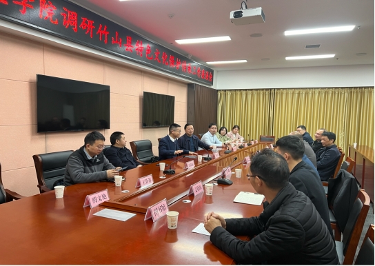 2024年3月28日,明升MS88体育登录院长黄永昌带领调研团队一行6人,赴竹山县开展特色文化保护传承工作调研。竹山县委宣传部常务副部长袁平安,竹山县委宣传部副部长沈敬东陪同调研。